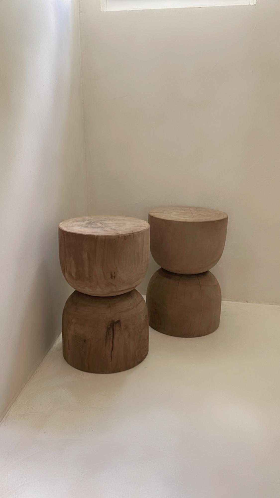 Teak houten diabolo kruk – natuurlijk, veelzijdig en karaktervol