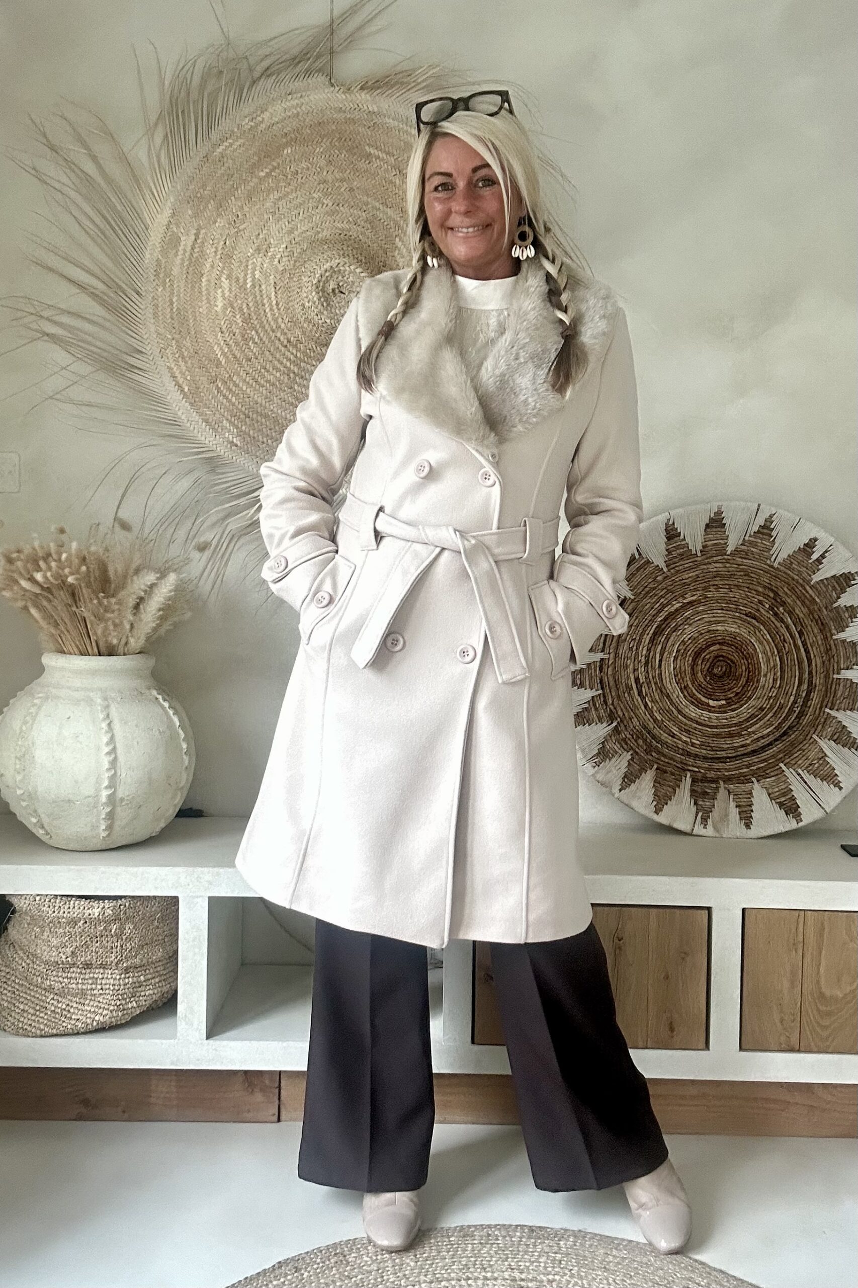 Trenchcoat met Afneembare Fake Fur Kraag – Soft Beige