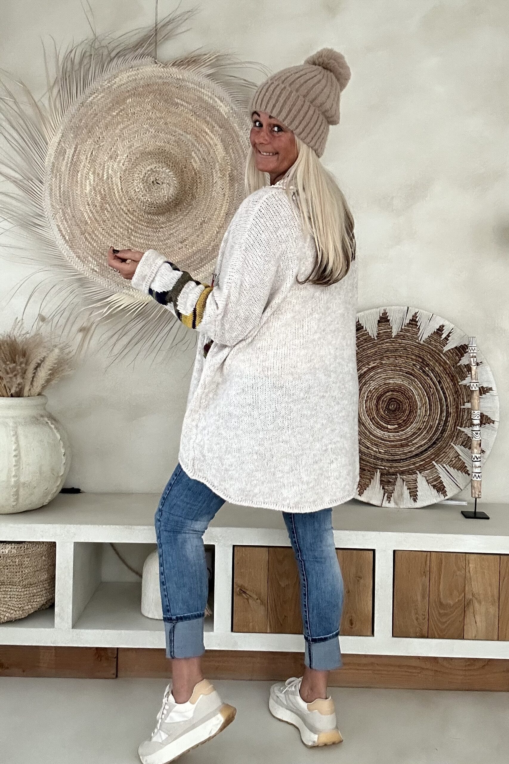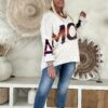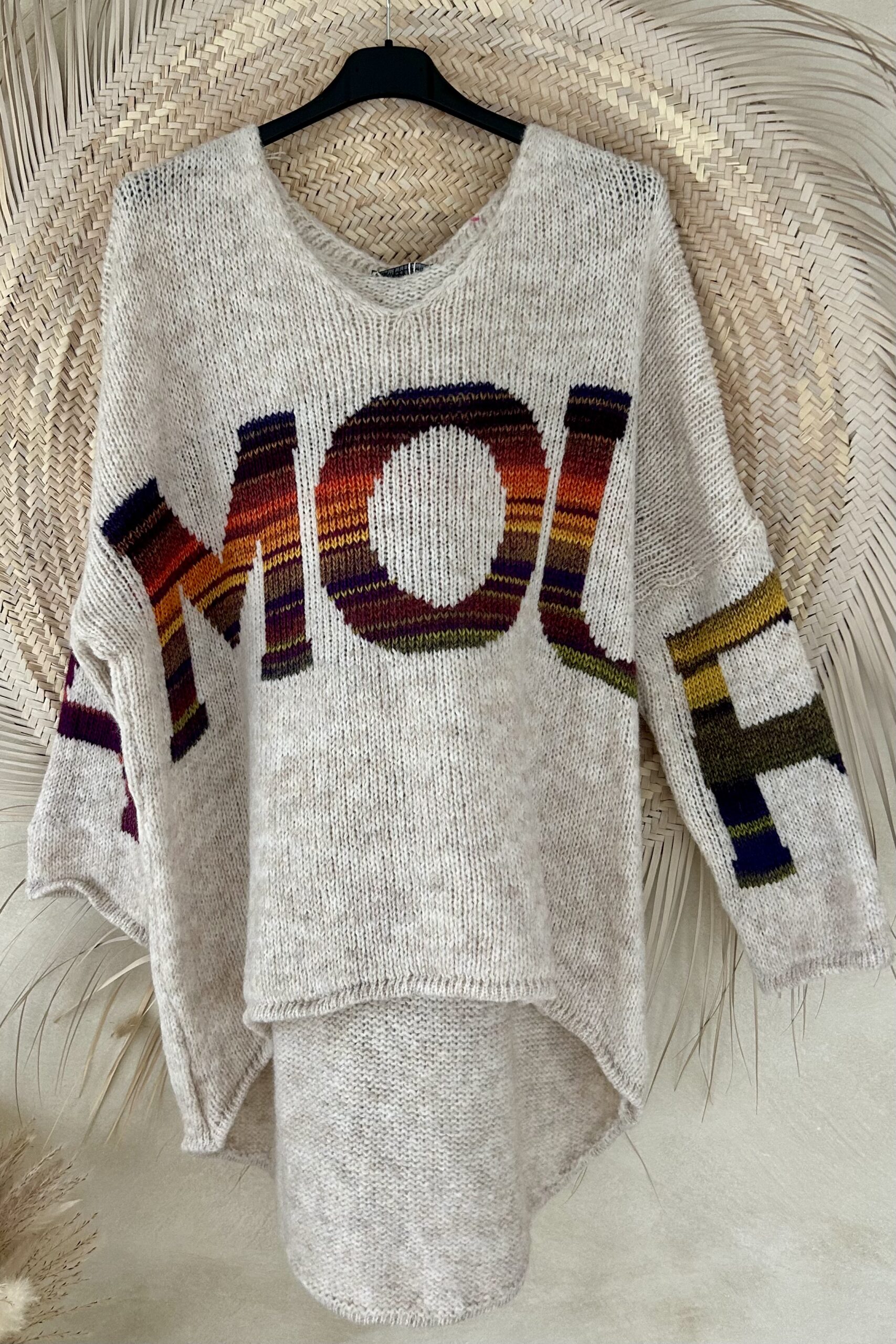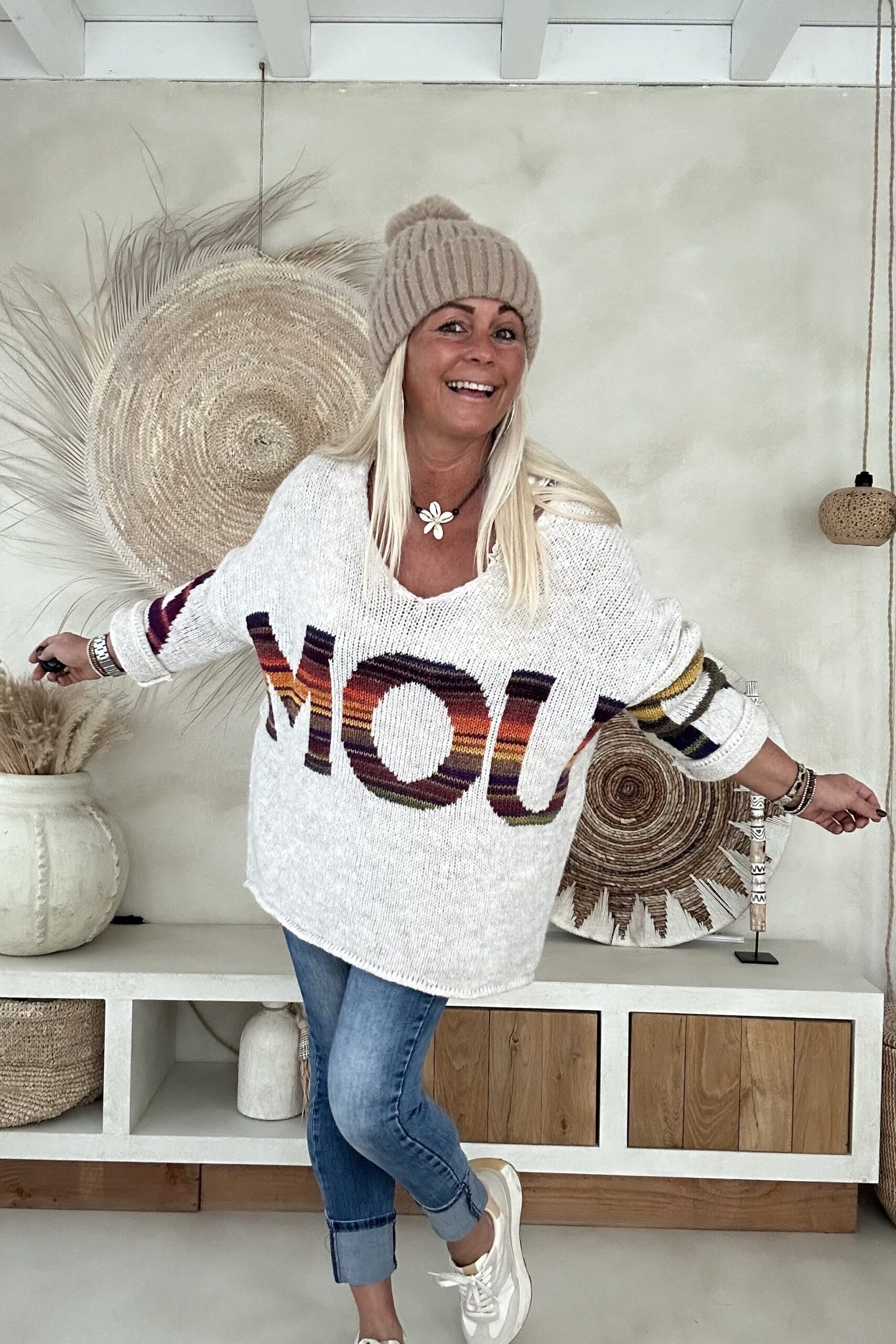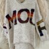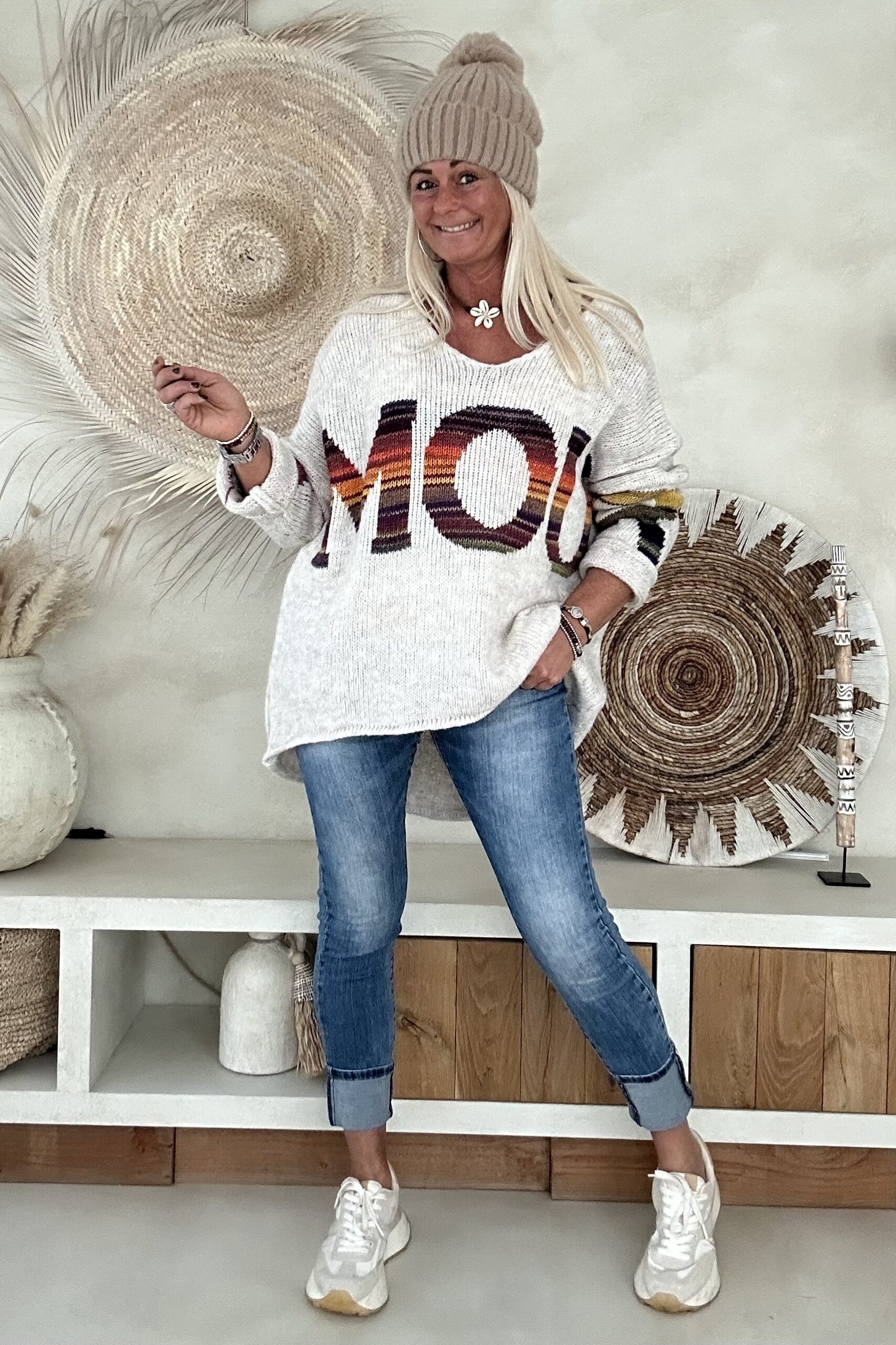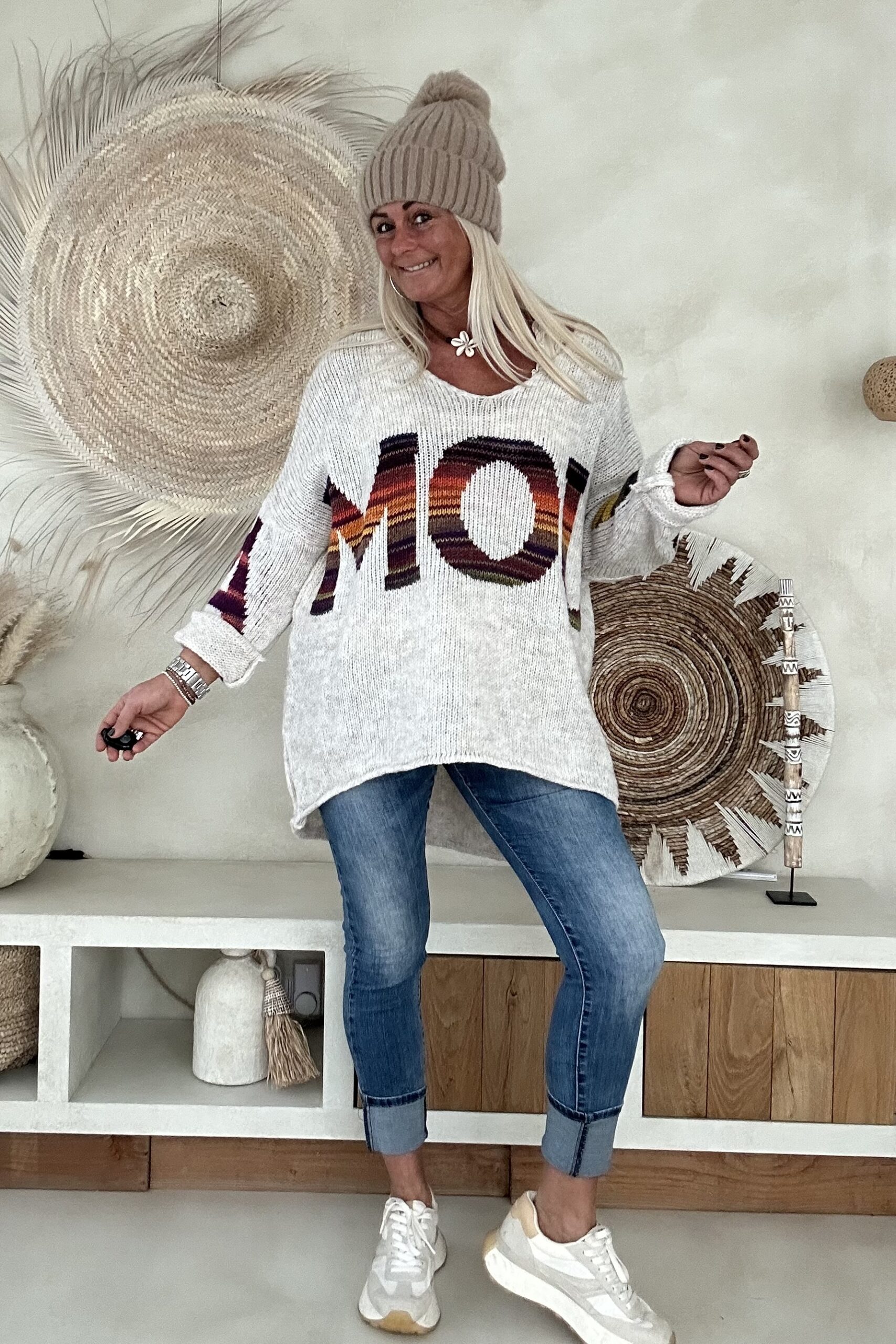 Deze AMOUR trui is een echte sfeermaker voor je outfit! Het zachte breisel, de mooie kleurovergangen en de grote AMOUR-tekst geven ’m een speelse én stijlvolle uitstraling. Dankzij het relaxte, ruimvallende model valt hij heerlijk nonchalant en draagt hij supercomfortabel. De asymmetrische lengte – langer aan de achterkant – zorgt voor een flatterende, moderne look. Perfect voor een cosy, trendy outfit en passend t/m maat 46.