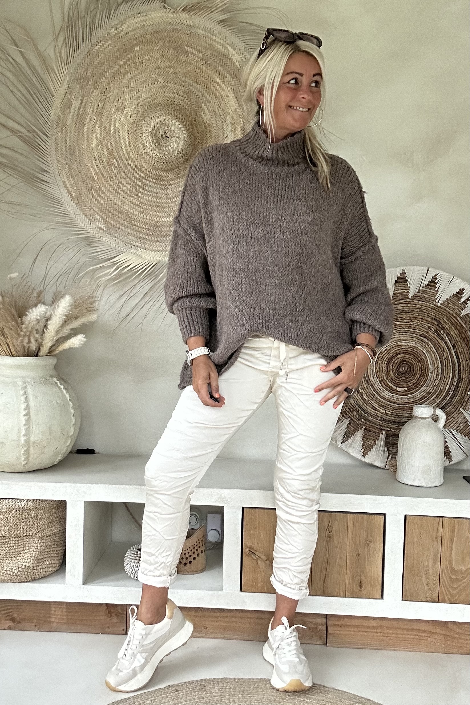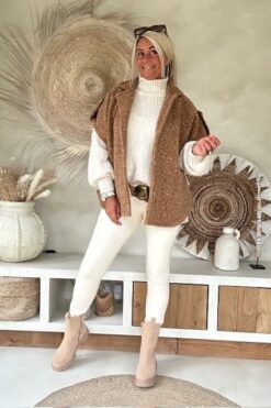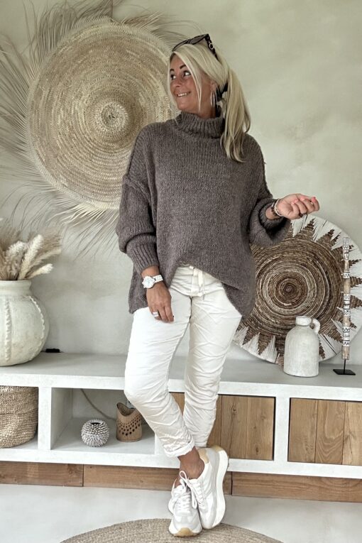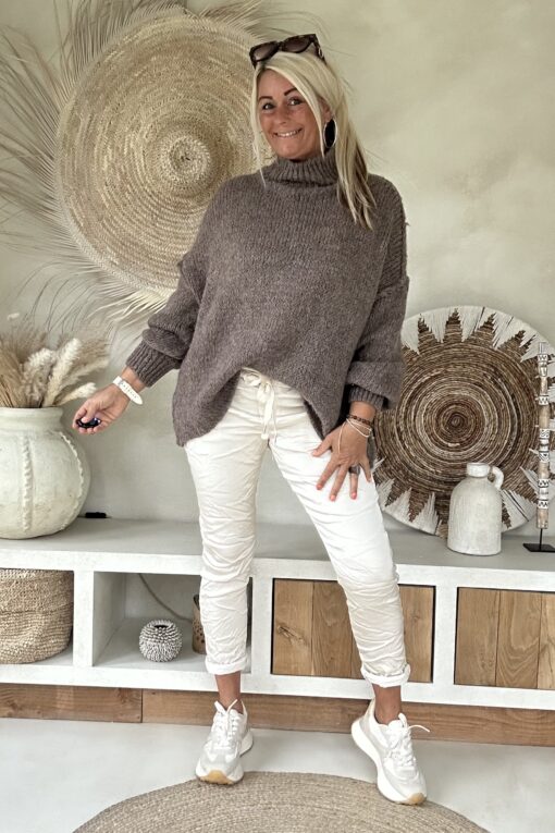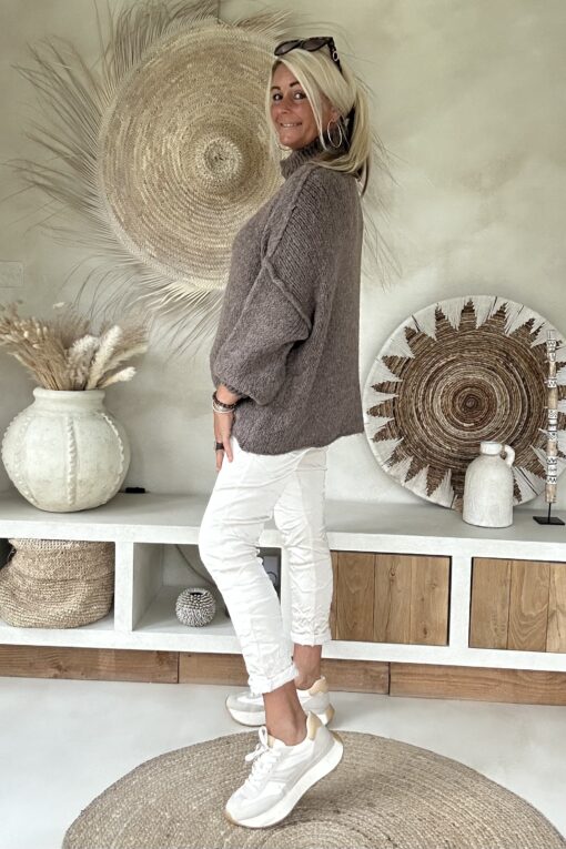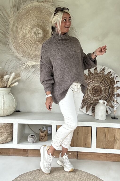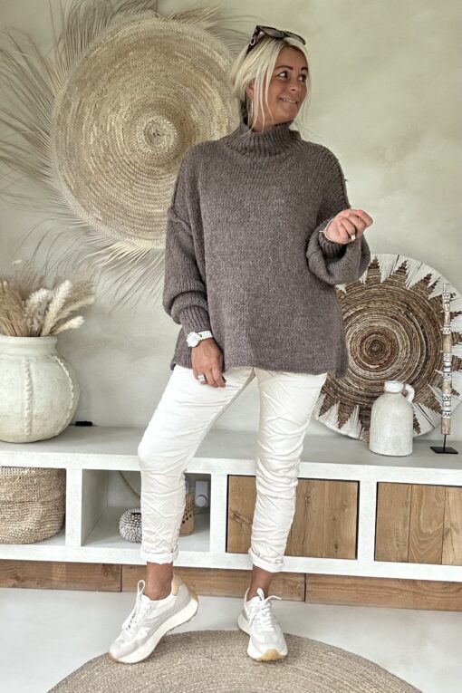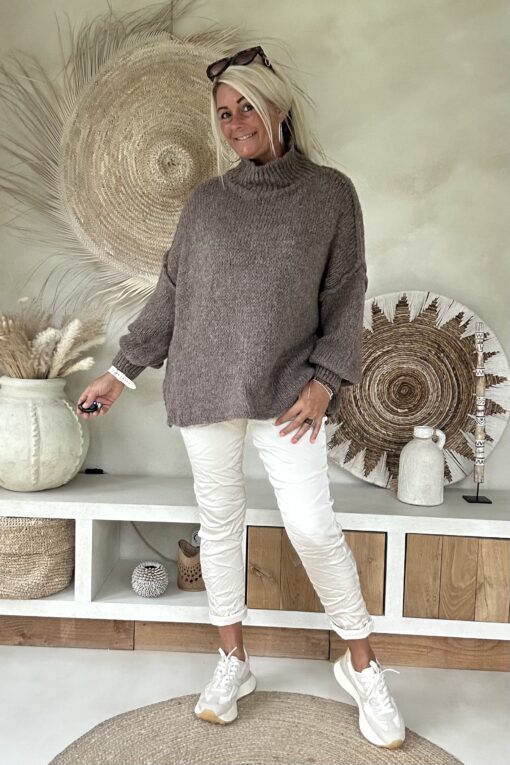 Trui Selina met Halve Col, Taupe.