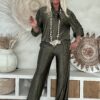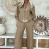 Gebreide Chevron Top Talinka, Bruin/Goud.