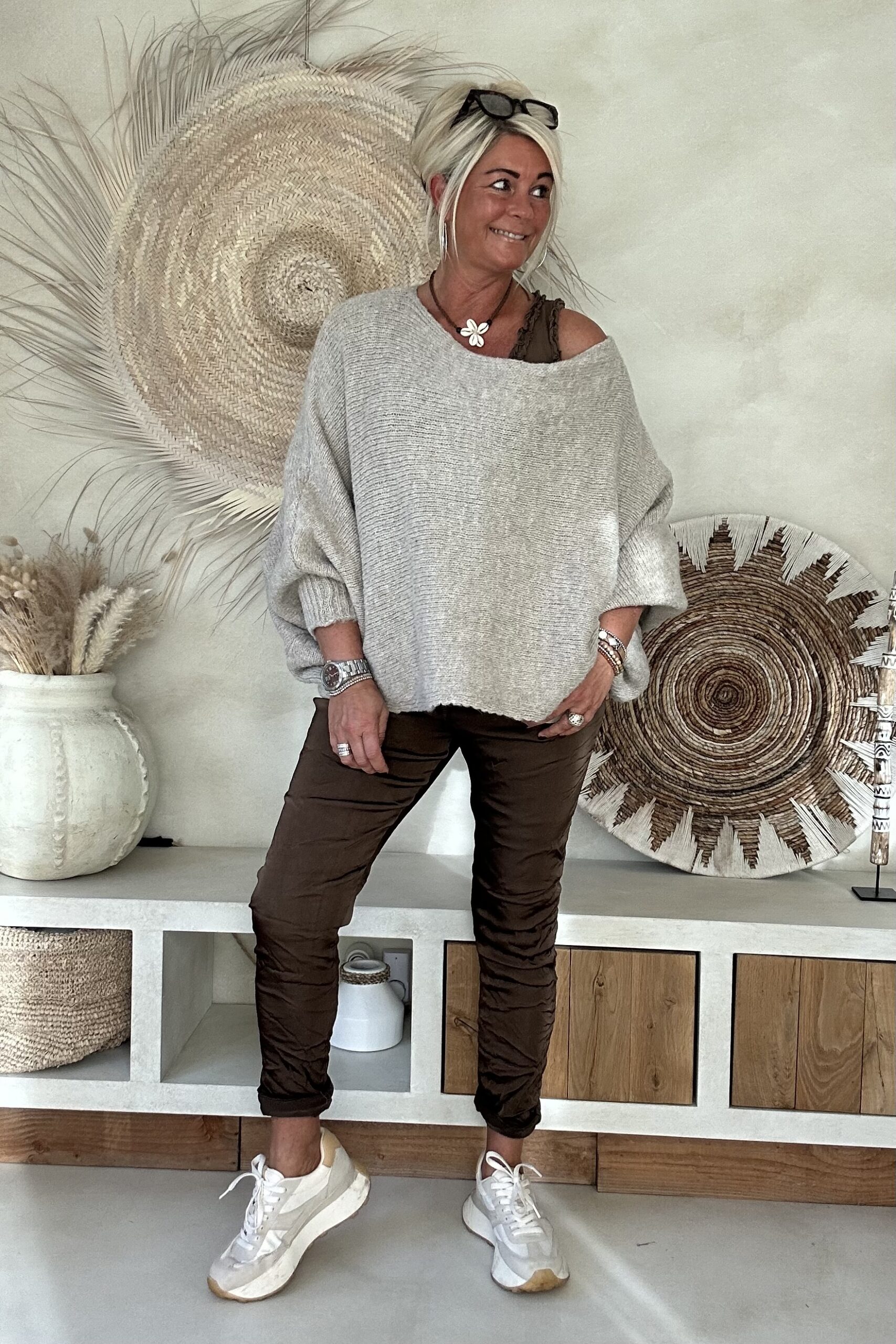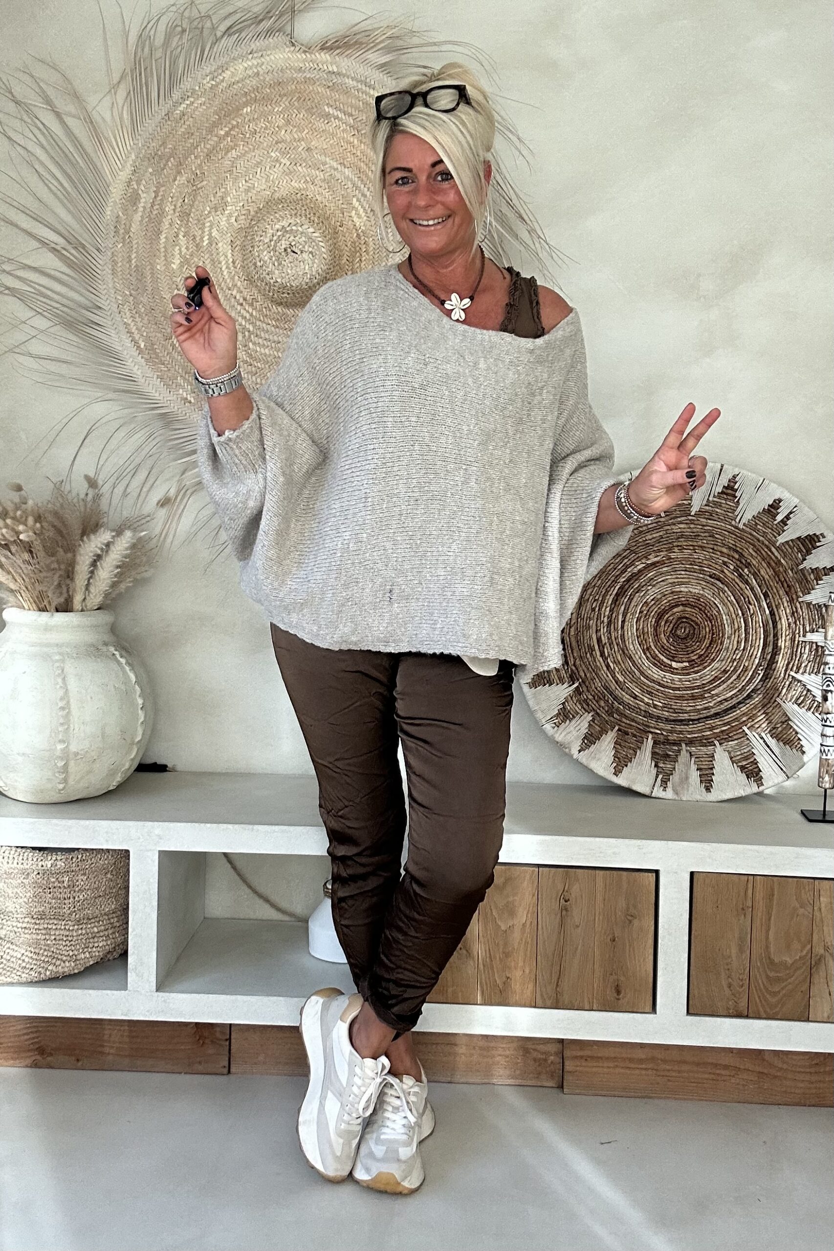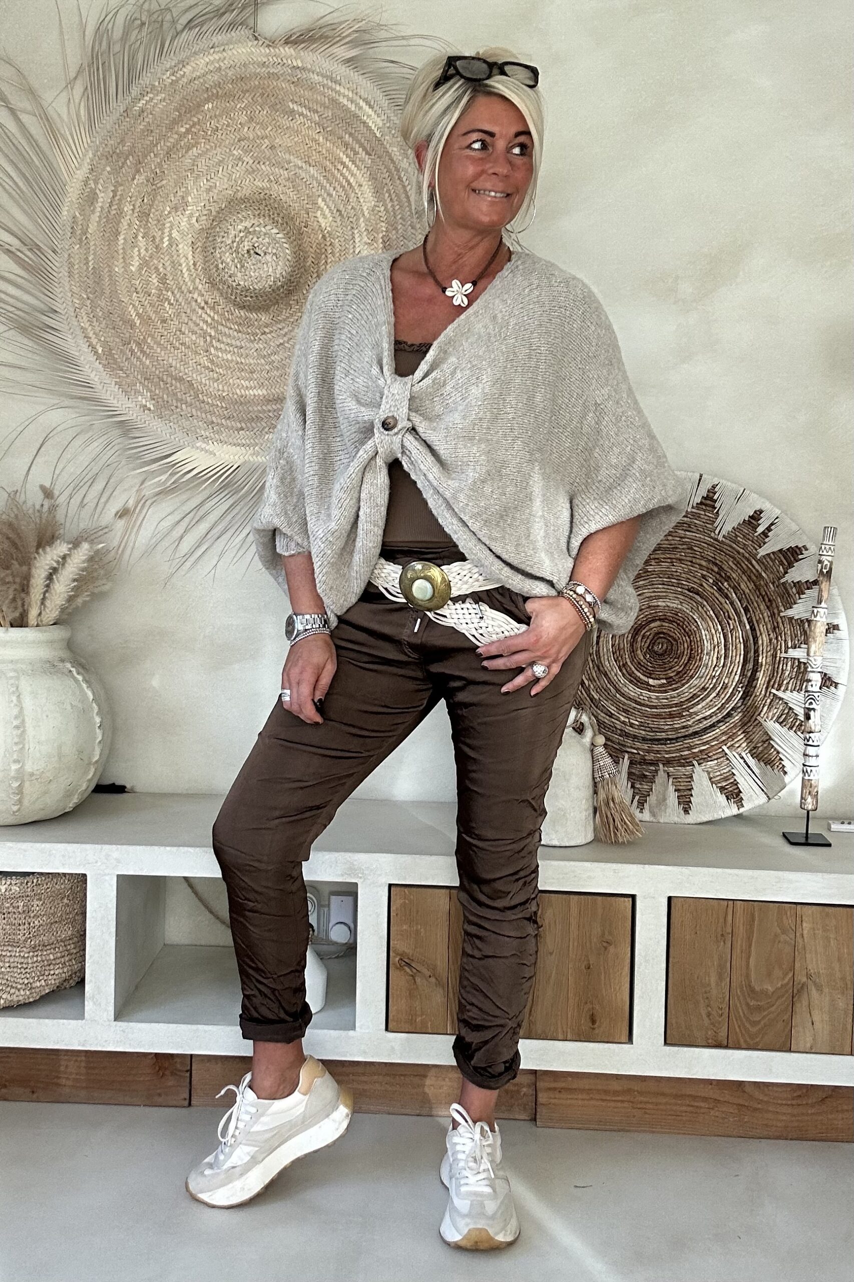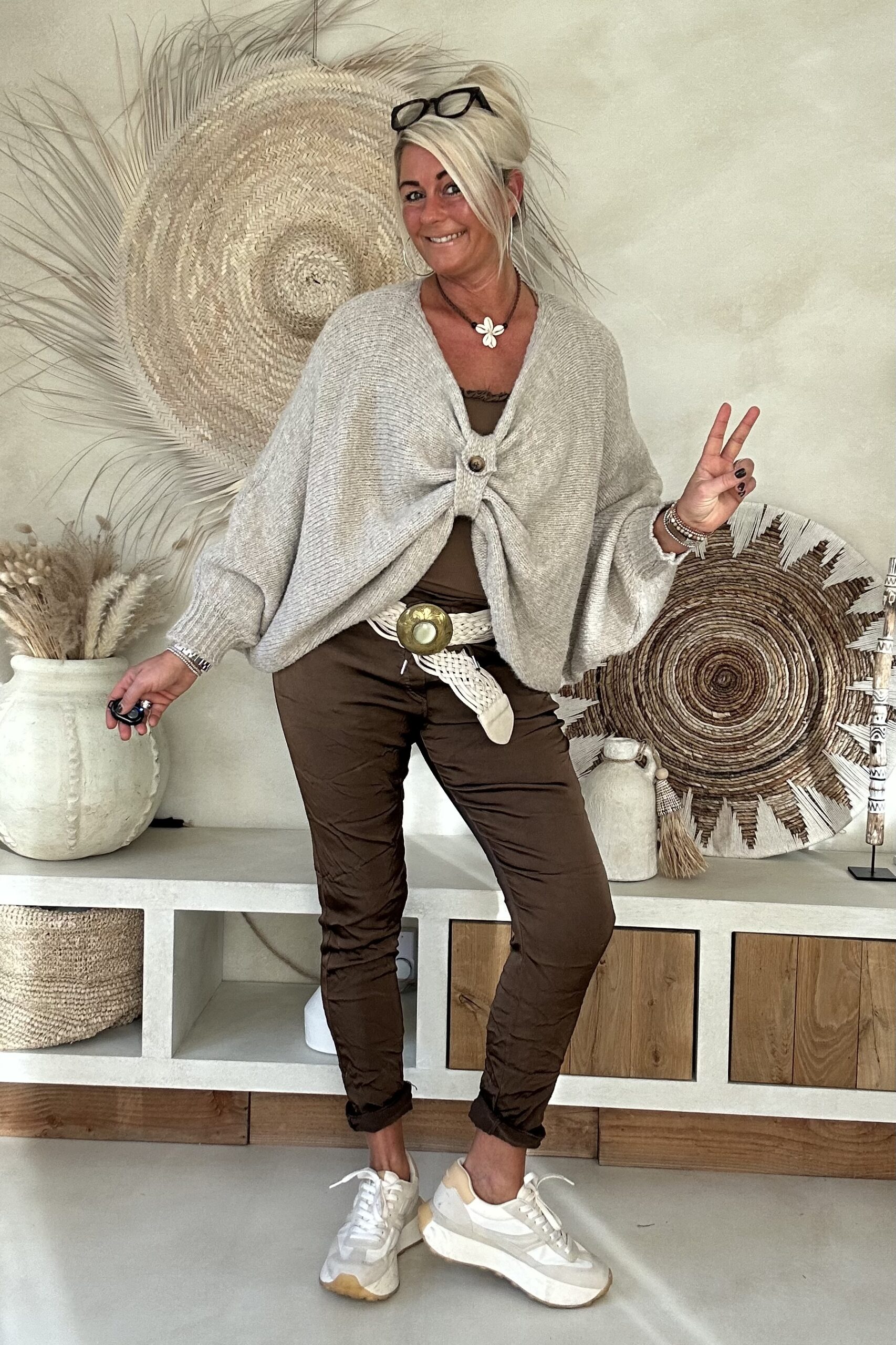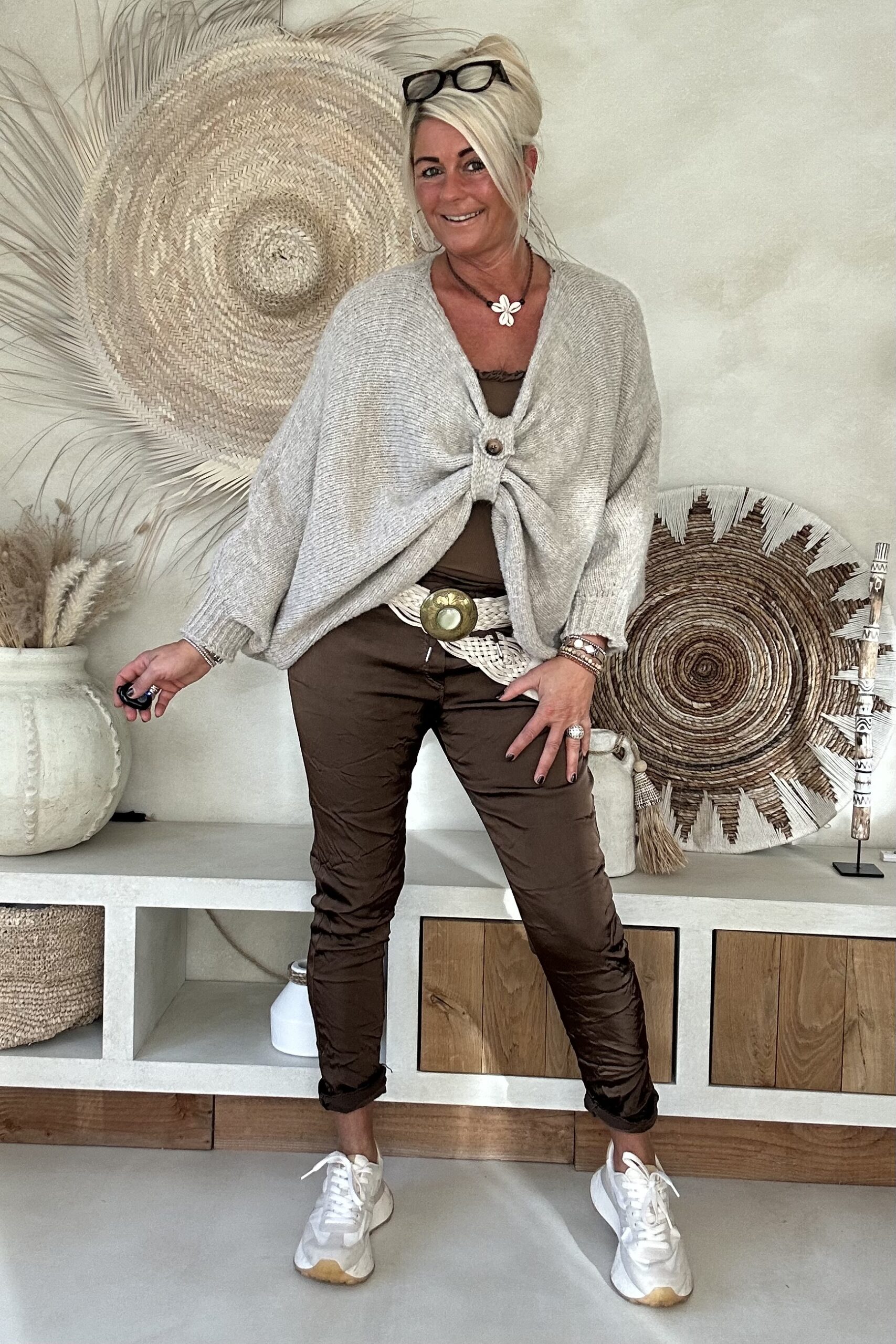 Deze prachtige trui is zo’n item dat je elke dag wilt aantrekken. Heerlijk zacht, soepel en comfortabel – perfect voor een moeiteloze, stijlvolle look. Dankzij het afneembare bandje kun je zelf kiezen hoe je ’m draagt: geknoopt voor een speels accent of los voor een relaxte, nonchalante uitstraling. Een veelzijdige musthave die prachtig valt en passend is t/m maat 44.