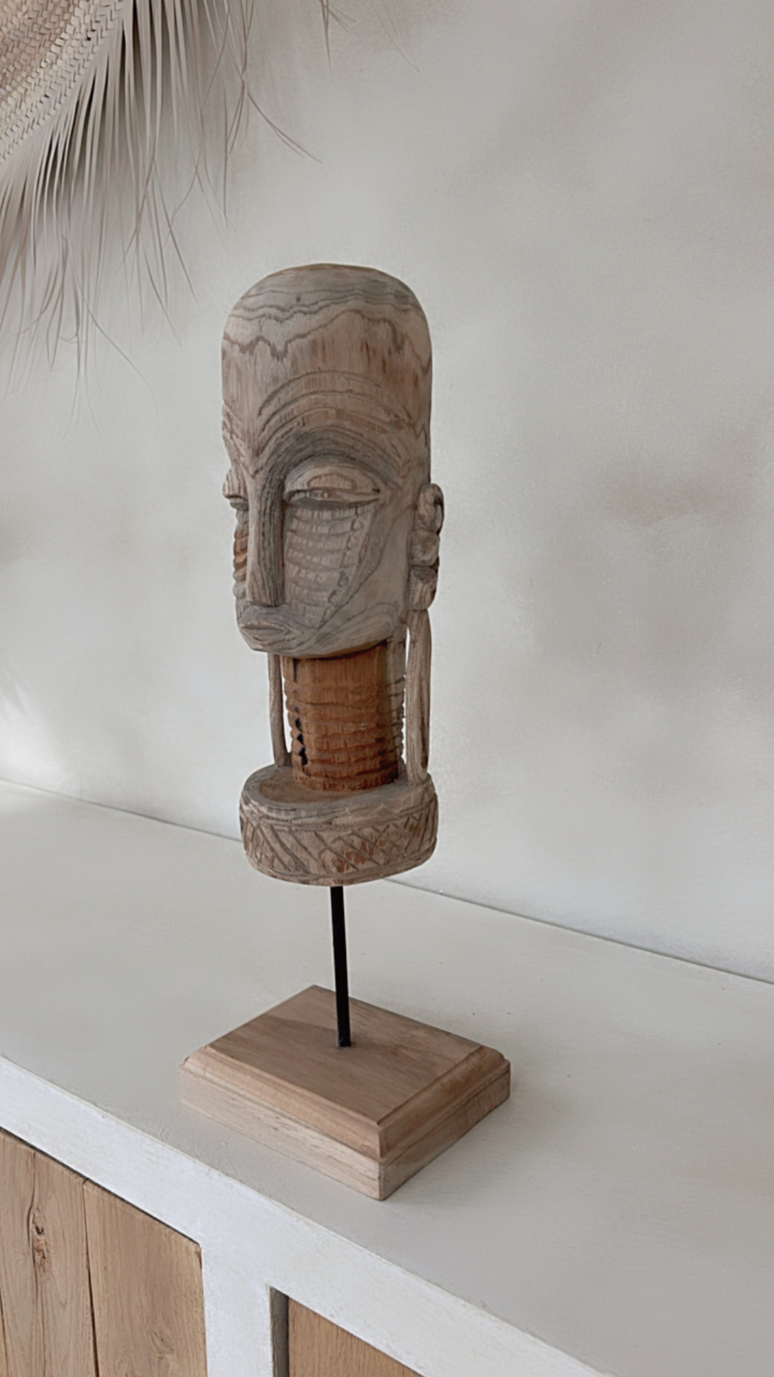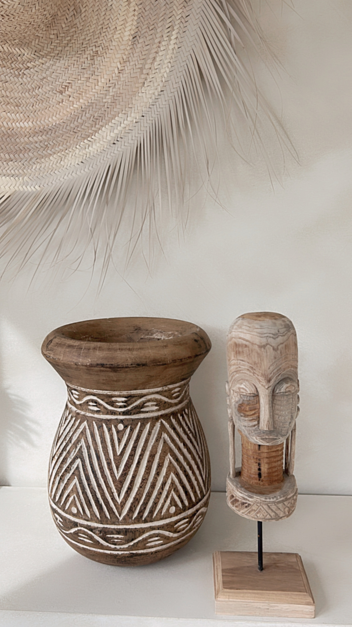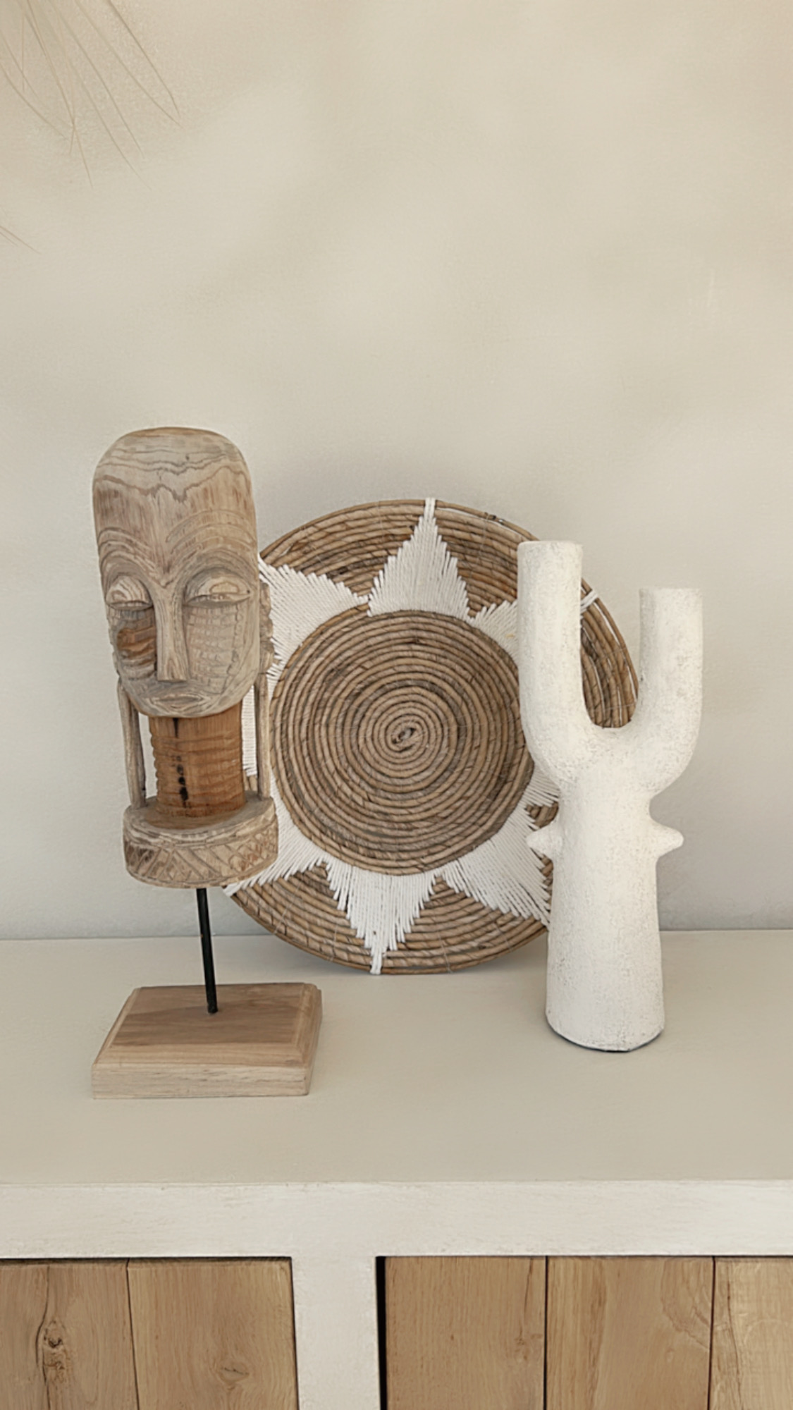 Het beeld is geïnspireerd op de traditionele Javaanse Wayang-stijl, maar heeft een minimalistische afwerking die perfect aansluit bij een eigentijds interieur. Denk: boho met Bali vibes. Of je het nu op een wandplank, dressoir of in een nis plaatst, dit beeld voegt meteen karakter en een gevoel van wereldse verfijning toe aan je ruimte.